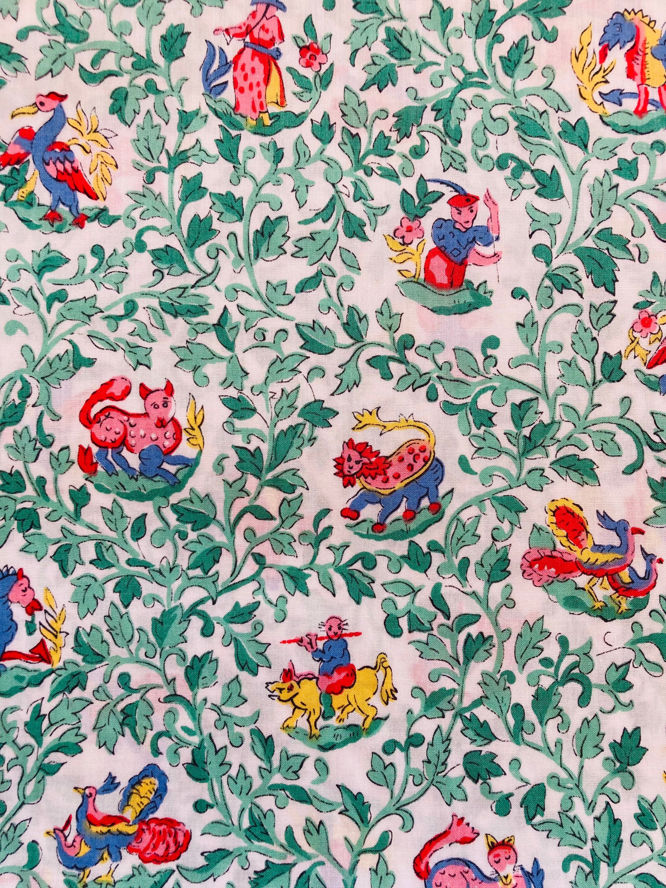 A very unusual vintage 1988/90 green and pink ‘Syon’ depicting a Chinese dragon and other figures.A lovely Liberty Tana Lawn cut to 17”x 10”