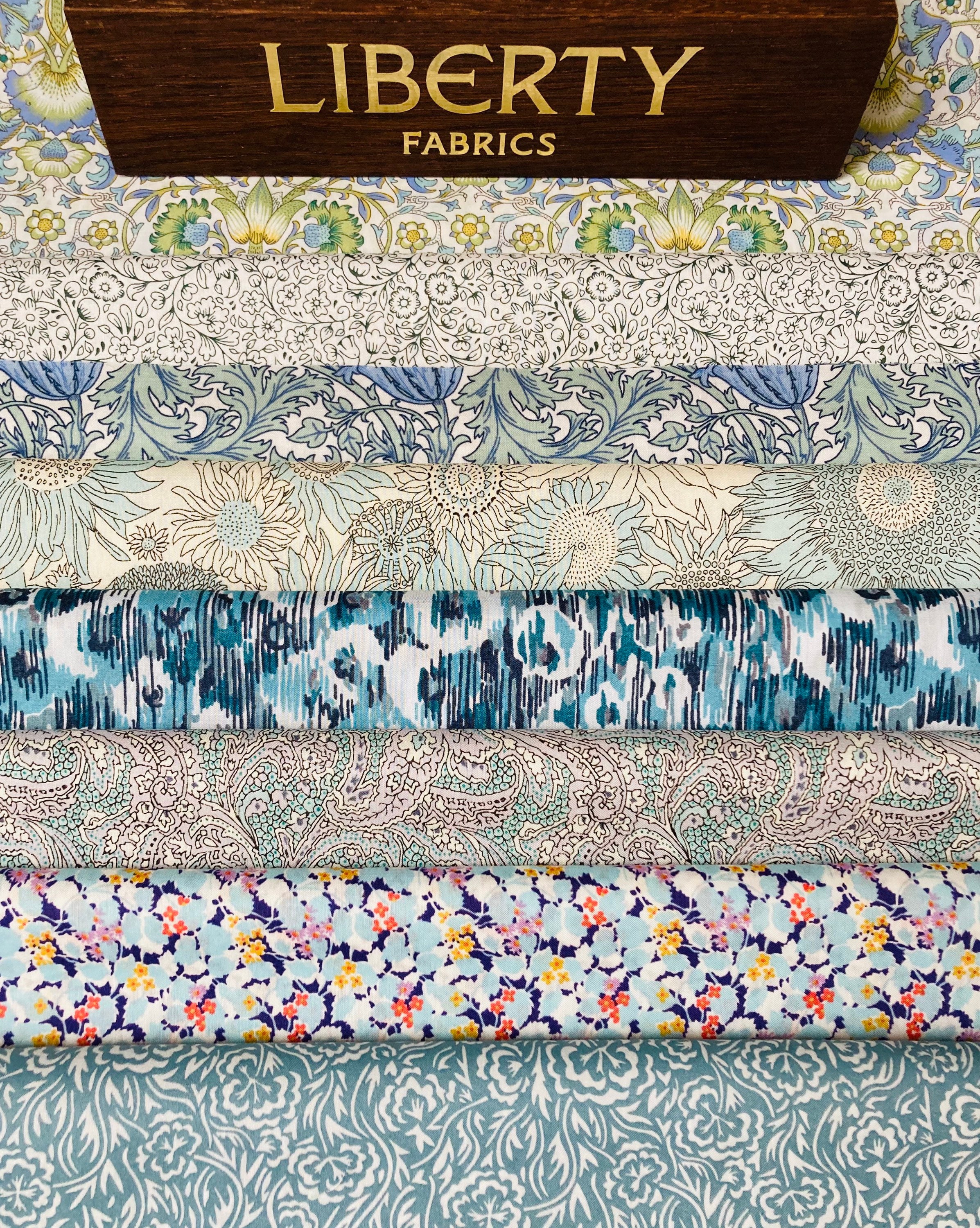 Liberty Tana Lawn Hidden Gems ‘Aquamarine’ fabric bundle. 8 pieces of 6”x 9” Quality Lawns