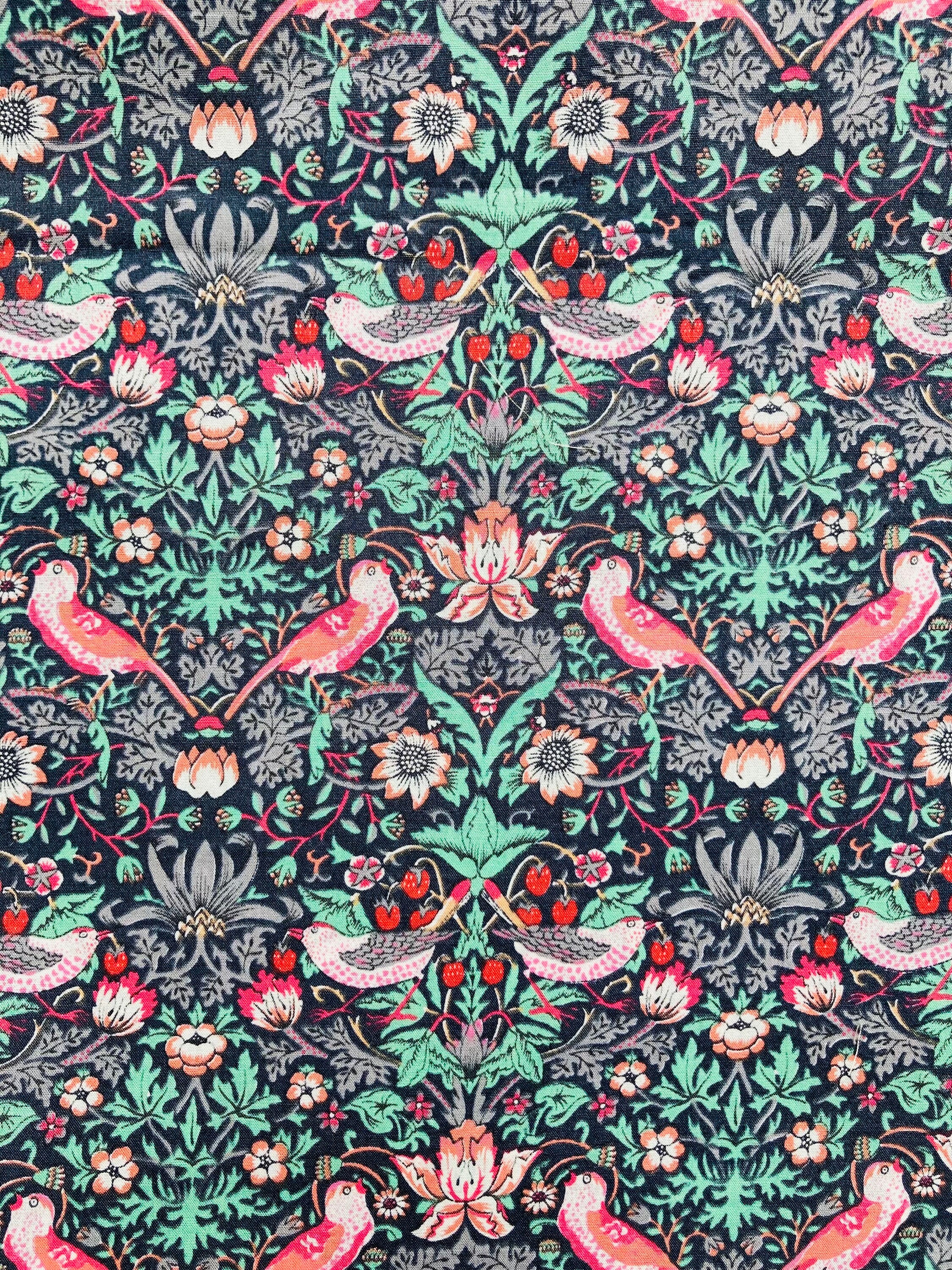 Liberty Tana Lawn, sold in 17 x 9” pieces. Beautiful, high cotton count in this lovely Strawberry Thief fabric. I offer international shipping on all of my fabrics which I dispatch globally via Royal Mail first class.