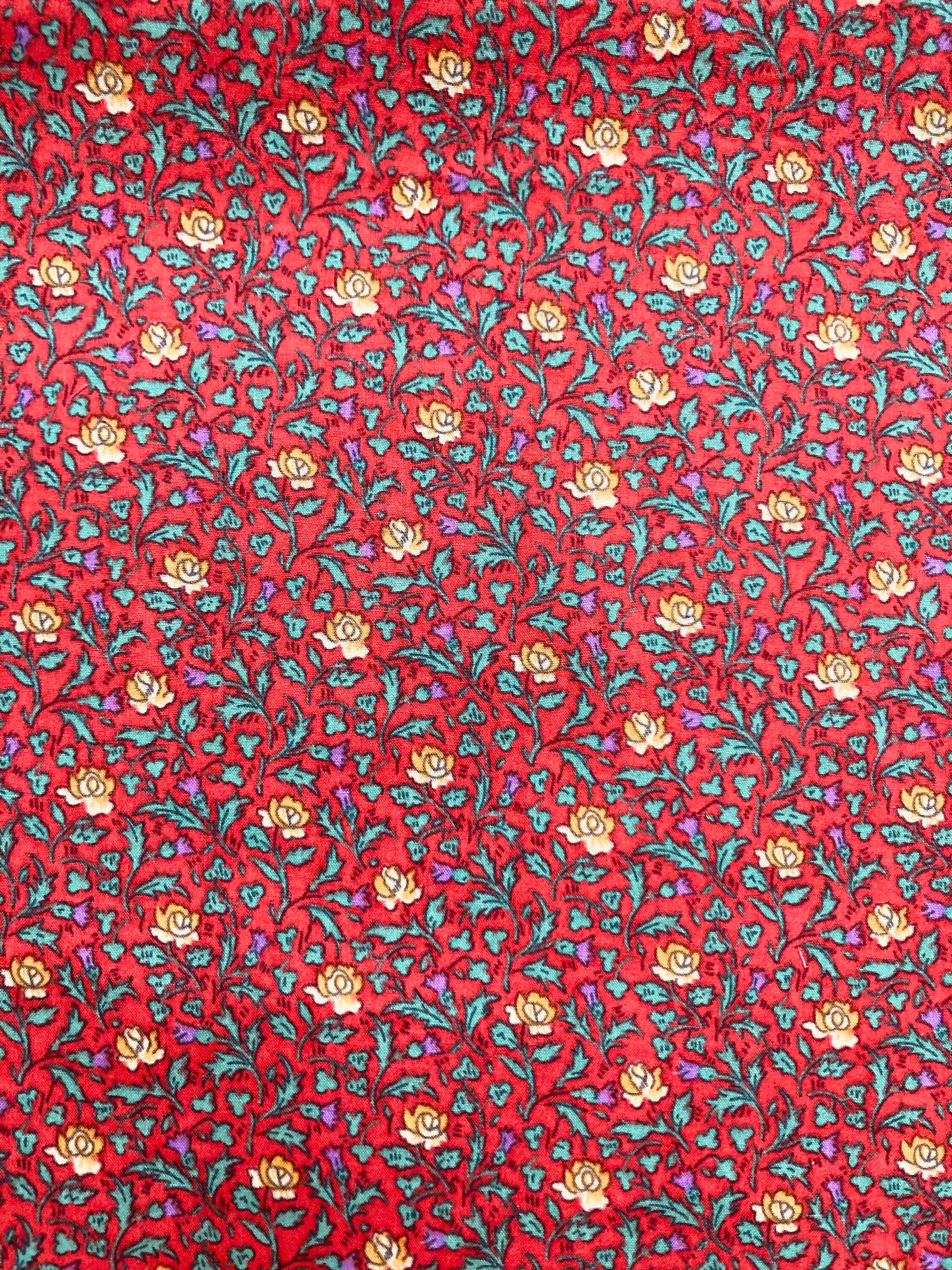 Rose and Thistle, A Discontinued Liberty Tana Lawn 13” x 9” fabric, Red and Green colours.