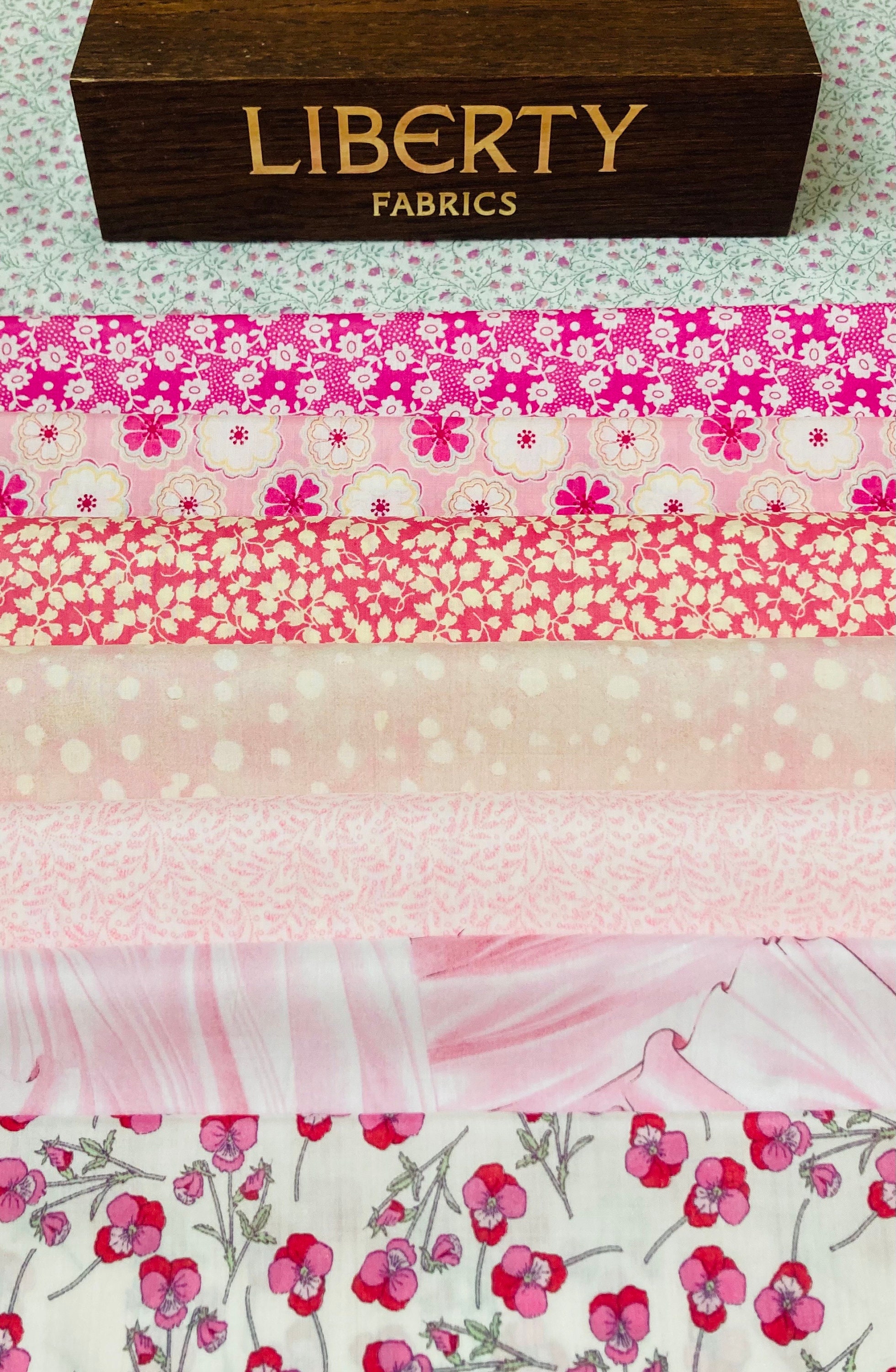 A Lovely Liberty Tana Lawn ‘Purely Pinks’ fabric Pack. 8 pieces, 6”x 9”